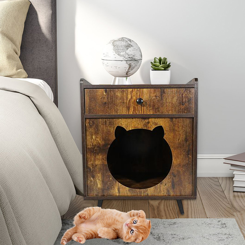 2. Creative Furniture Design : 독특한 레트로 TV 모양 실용 서랍 저장, 고양이의 아늑한 오두막 일뿐 만 아니라 거실 측면 테이블로도 사용할 수있는 다목적은 공간을 차지하지 않습니다.